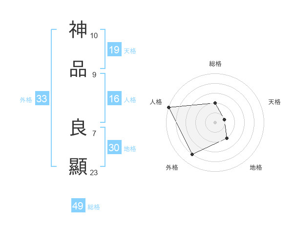 神品 良顯さんの総格は49画の2点!