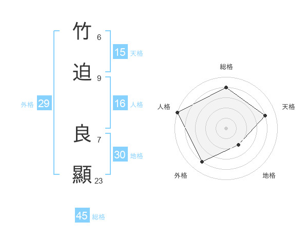 竹迫 良顯さんの総格は45画の4点!