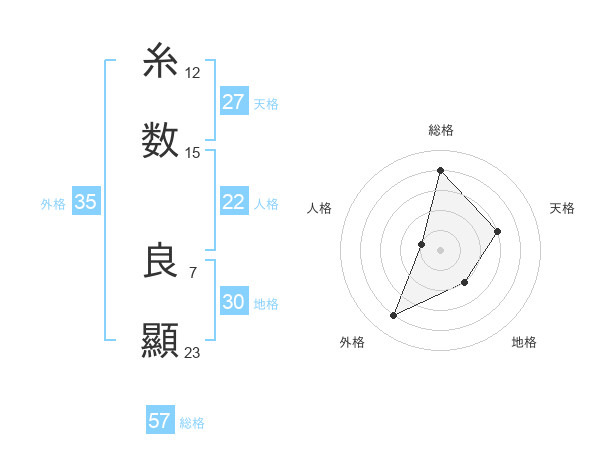 糸数 良顯さんの総格は57画の4点!
