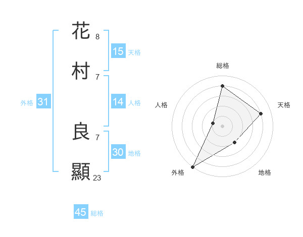 花村 良顯さんの総格は45画の4点!