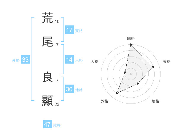 荒尾 良顯さんの総格は47画の5点!