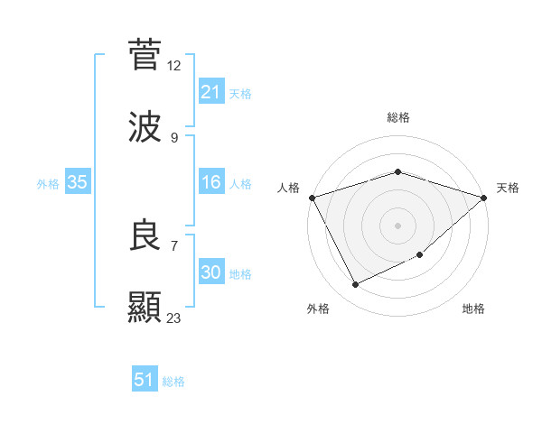 菅波 良顯さんの総格は51画の3点!