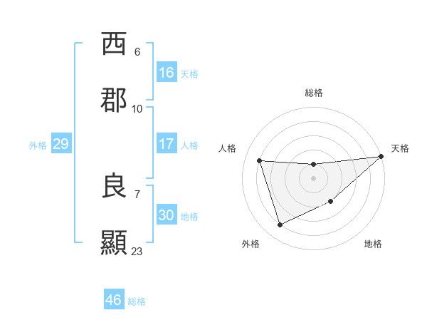 西郡 良顯さんの外格は29画の4点!