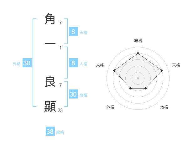 角一 良顯さんの総格は38画の4点!