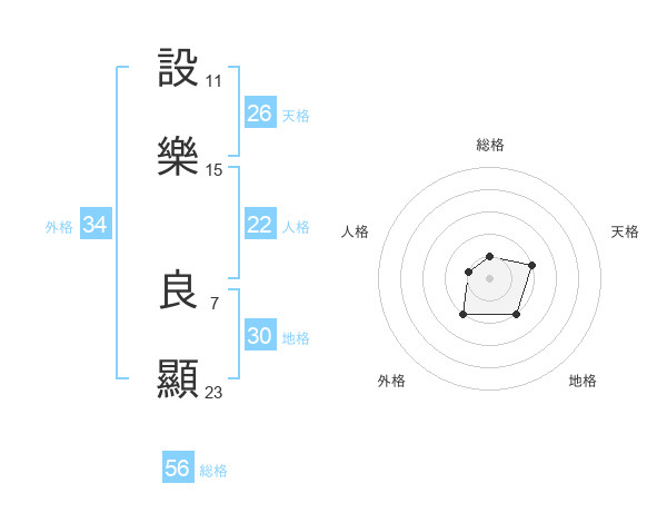設樂 良顯さんを姓名の画数から五運を鑑定