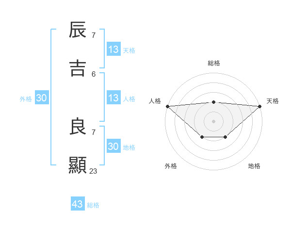 辰吉 良顯さんの天格は13画の5点!