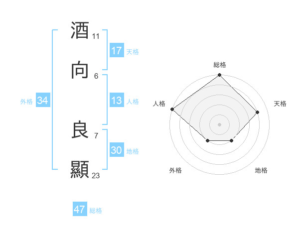 酒向 良顯さんの外格は34画の2点!