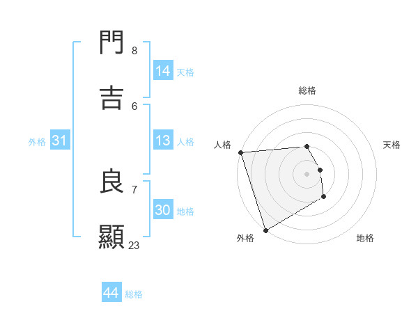 門吉 良顯さんの総格は44画の2点!