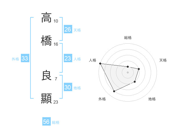 高橋 良顯さんを姓名の画数から五運を鑑定