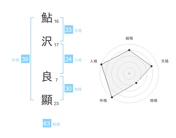 鮎沢 良顯さんの総格は63画の4点!
