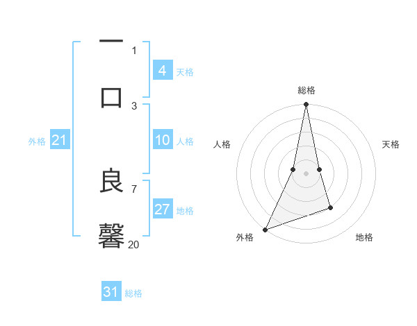 一口 良馨さんの外格は21画の5点!