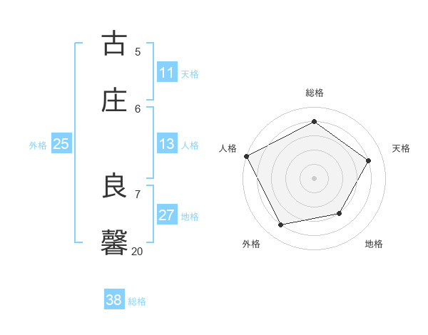 古庄 良馨さんを姓名の画数から五運を鑑定