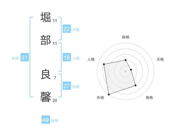 堀部 良馨さんを姓名の画数から五運を鑑定