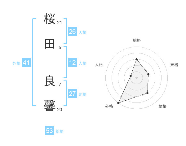 桜田 良馨さんを姓名の画数から五運を鑑定