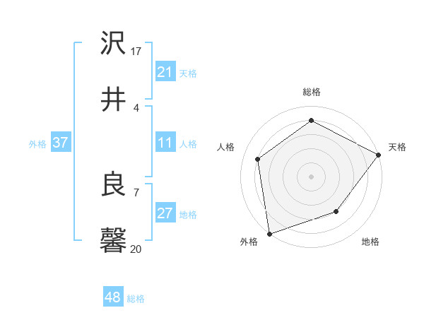 沢井 良馨さんの外格は37画の5点!