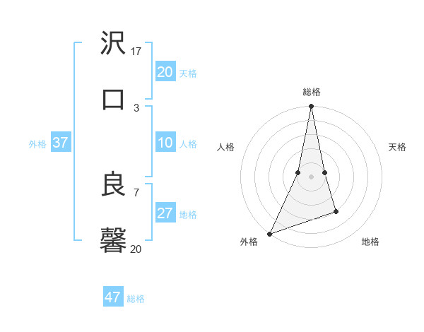 沢口 良馨さんを姓名の画数から五運を鑑定