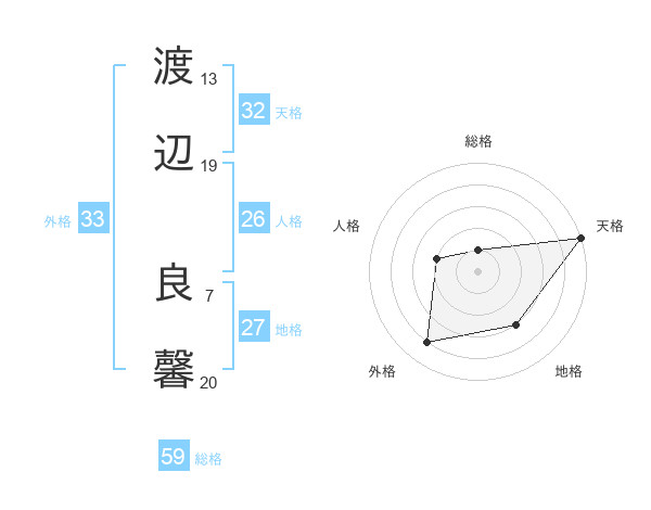 渡辺 良馨さんを姓名の画数から五運を鑑定