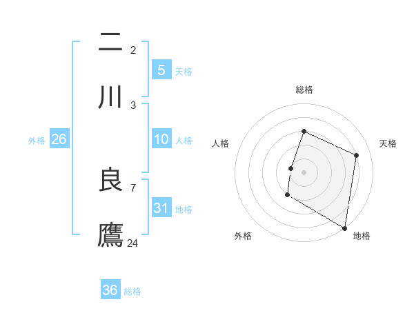 二川 良鷹さんの地格は31画の5点!