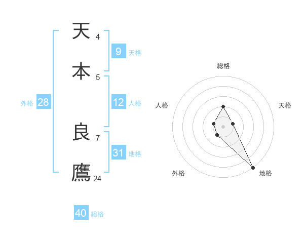 天本 良鷹さんを姓名の画数から五運を鑑定