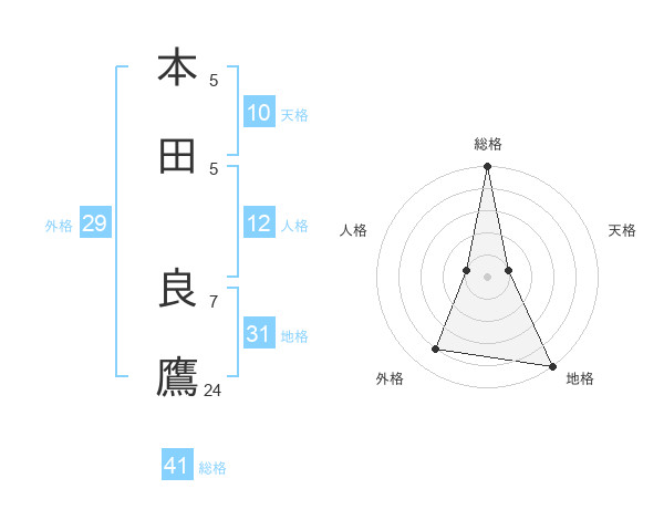 本田 良鷹さんを姓名の画数から五運を鑑定