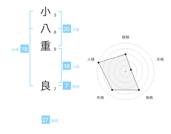 小八重 良さんの総格は27画の3点!