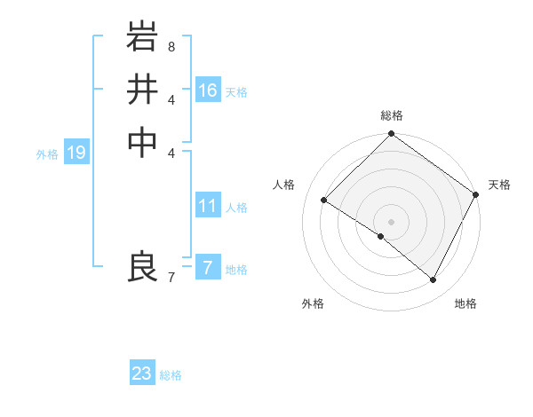 岩井中 良さんの総格は23画の5点!