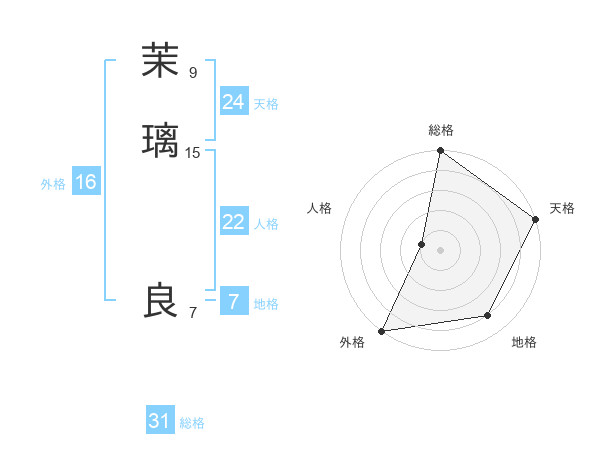 茉璃 良さんの総格は31画の5点!