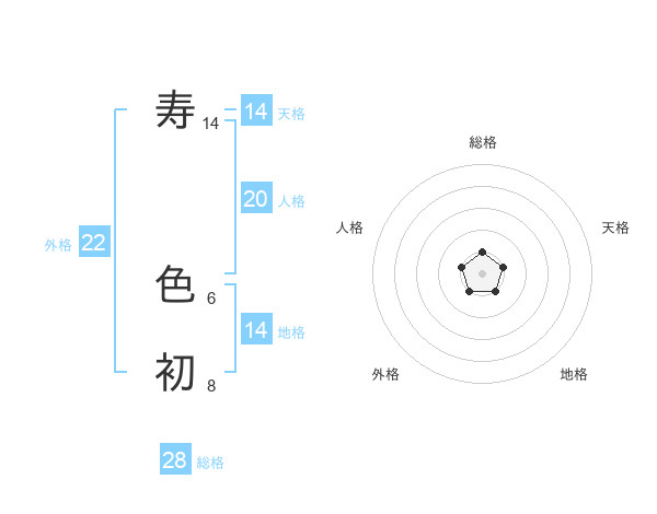 寿 色初さんの総格は28画の1点!