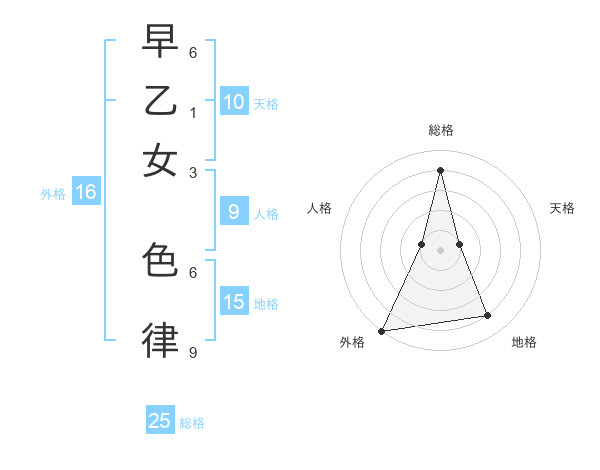 早乙女 色律さんを姓名の画数から五運を鑑定