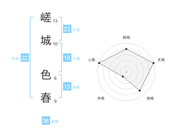 嵯城 色春さんを姓名の画数から五運を鑑定
