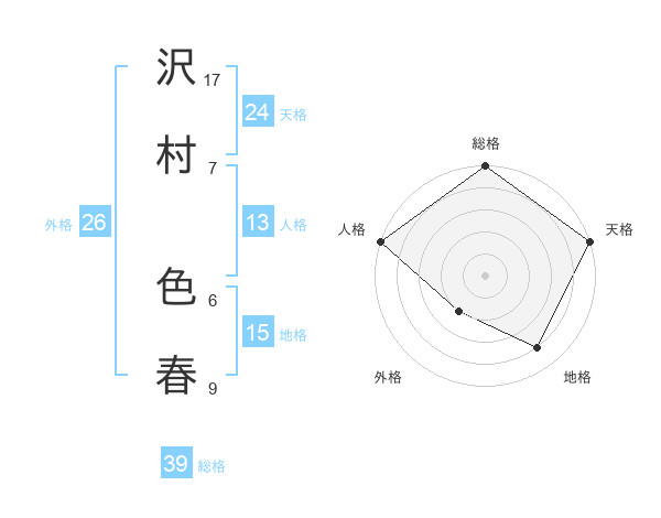 沢村 色春さんの総格は39画の5点!