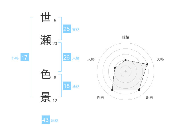 世瀬 色景さんの天格は25画の4点!