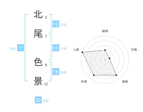 北尾 色景さんを姓名の画数から五運を鑑定