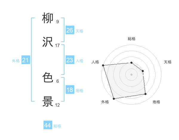 柳沢 色景さんを姓名の画数から五運を鑑定