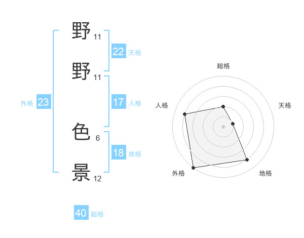 野野 色景さんの外格は23画の5点!