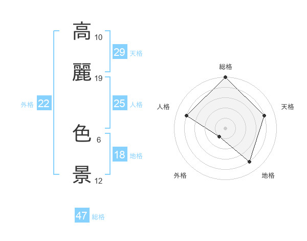 高麗 色景さんの総格は47画の5点!