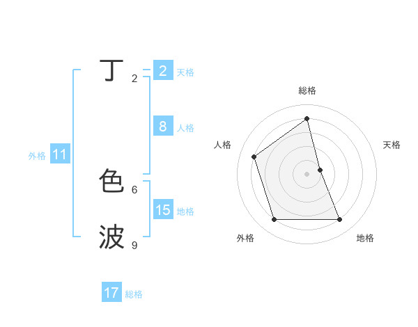 丁 色波さんの総格は17画の4点!