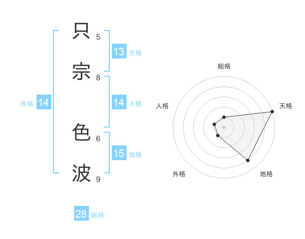 只宗 色波さんの天格は13画の5点!