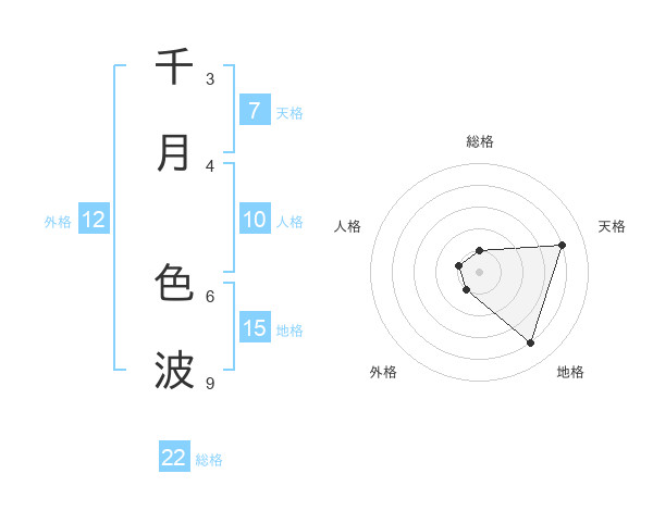 千月 色波さんの総格は22画の1点!
