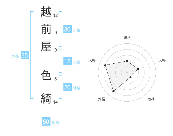 越前屋 色綺さんを姓名の画数から五運を鑑定