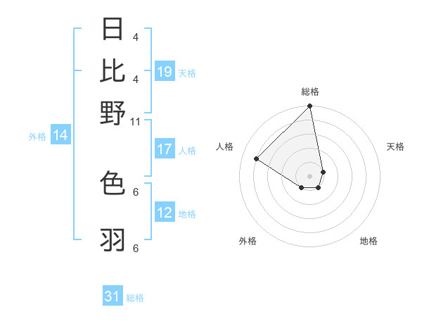 日比野 色羽さんを姓名の画数から五運を鑑定