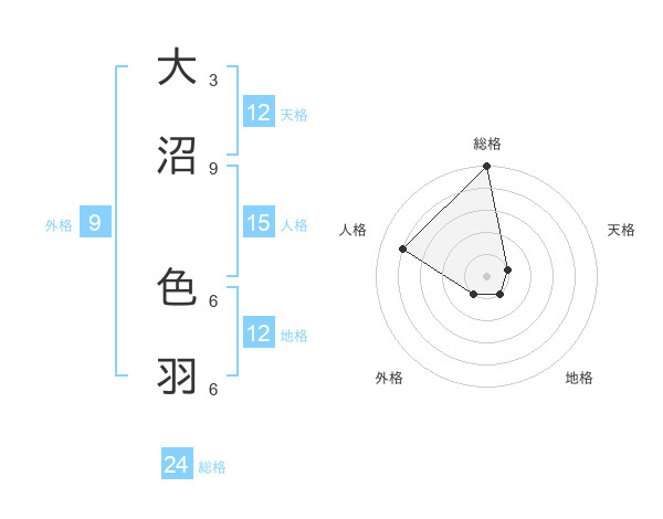大沼 色羽さんの総格は24画の5点!