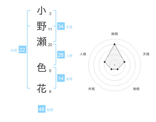 小野瀬 色花さんを姓名の画数から五運を鑑定