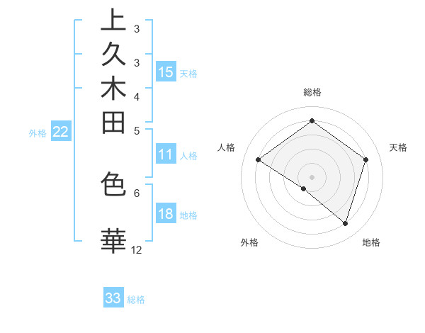 上久木田 色華さんを姓名の画数から五運を鑑定