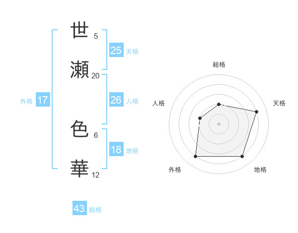 世瀬 色華さんの総格は43画の2点!