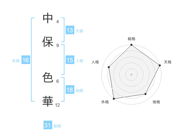 中保 色華さんの天格は13画の5点!