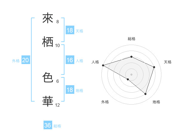來栖 色華さんの天格は18画の4点!