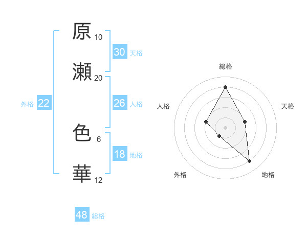 原瀬 色華さんの天格は30画の2点!