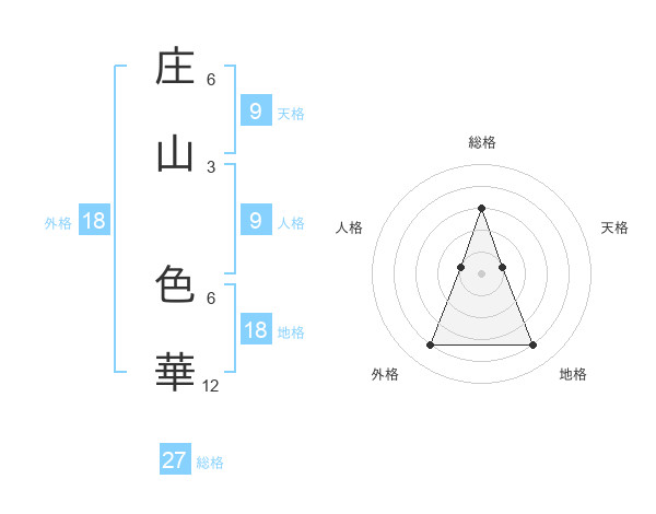 庄山 色華さんの総格は27画の3点!