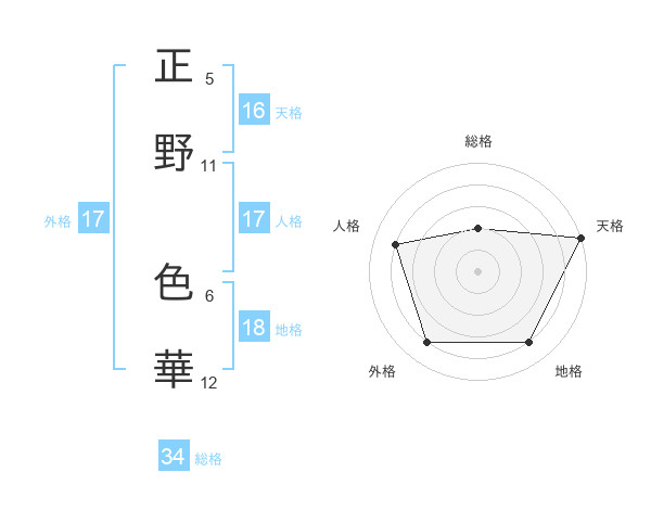 正野 色華さんの天格は16画の5点!